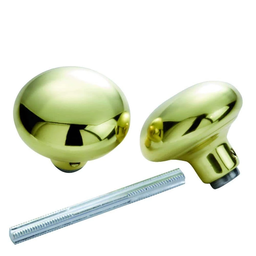 This polished brass knob and spindle set is from the First Watch Security brand. The knobs themselves are made from solid brass. They are fantastic replacements or upgrades to current knob or lever sets.