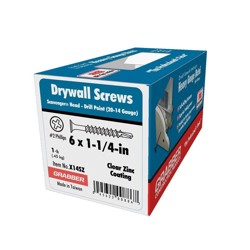Grabber’s drywall screws are used to attach drywall or sheetrock to wooden studs. The sharp point pierces drywall and the sharp bugle head tapers down to prevent the tearing of drywalls paper cover. The spaced threads make driving through the material and wood simple. Comes in various lengths and finishes offering some corrosion protection.