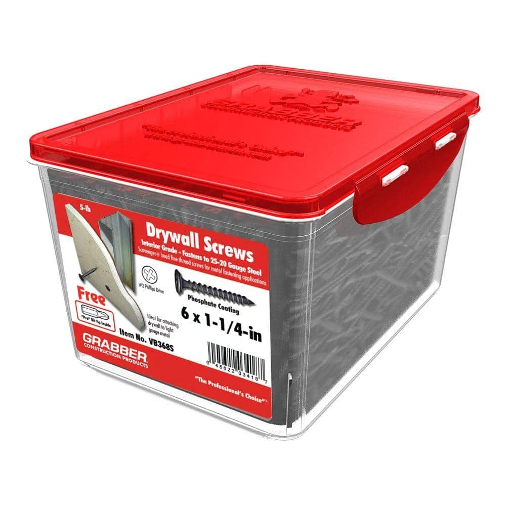 Grabber’s drywall screws are used to attach drywall to metal studs. The sharp point pierces drywall and the sharp bugle head tapers down to prevent the tearing of drywalls paper cover. The spaced threads make driving through the material and wood simple. Comes in various lengths and finishes offering some corrosion protection. Not designed to attach drywall to wooden stud