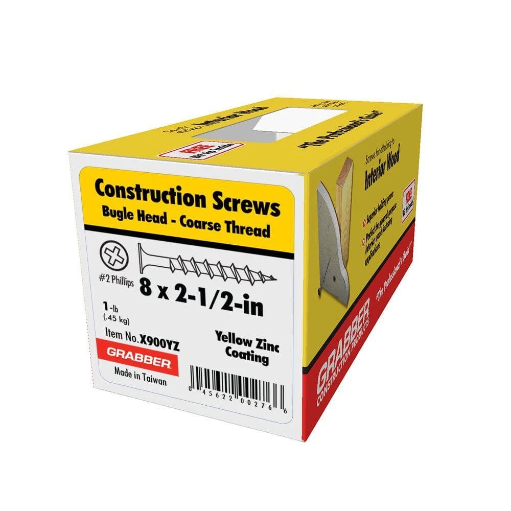 Grabber’s drywall screws are used to attach drywall or sheetrock to wooden studs. The sharp point pierces drywall and the sharp bugle head tapers down to prevent the tearing of drywalls paper cover. The spaced threads make driving through the material and wood simple. Comes in various lengths and finishes offering some corrosion protection.