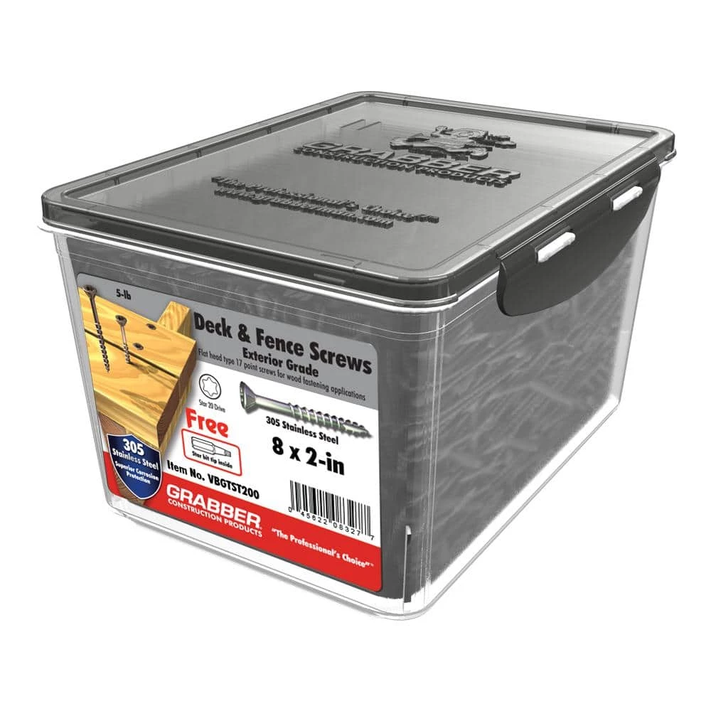 Stainless Steel deck fastener designed for all outdoor wood construction such as decking, patios, lawn furniture, window boxes, etc. Eliminates staining or streaking around fastener heads when used with cedar, redwood, mahoganies, and wood composites. Type 17 point eliminates pre-drilling in most cases.