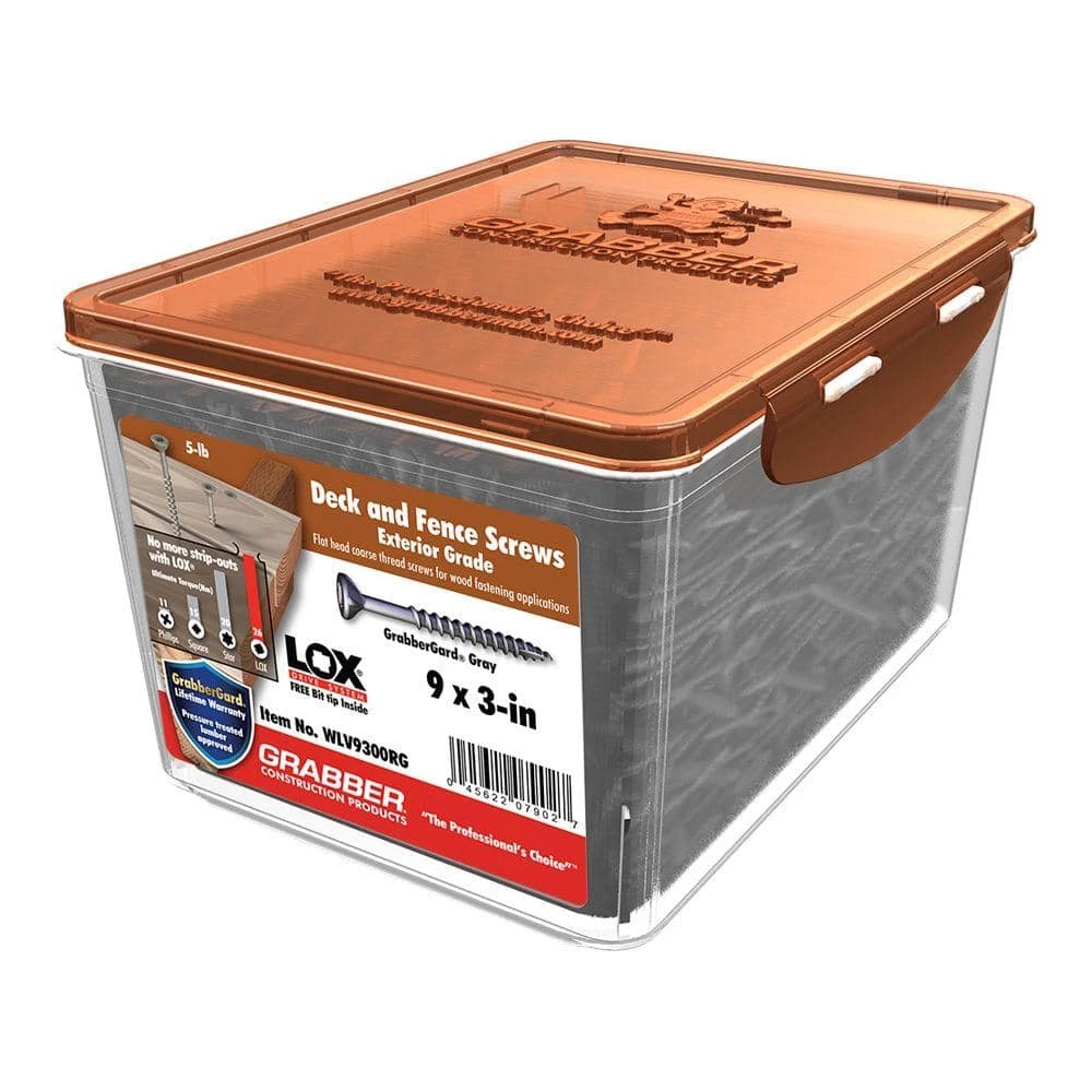 Use these Grabber LOX Wood Screws with Grabbergard Gray coating for any Exterior Project, Decks, fences, Siding, Lattice, Docks and More. Featuring LOX advanced driver system engineered for high-torque applications. LOX grabs hard and sinks even harder, giving you positive joint reliability with predictable results every time.