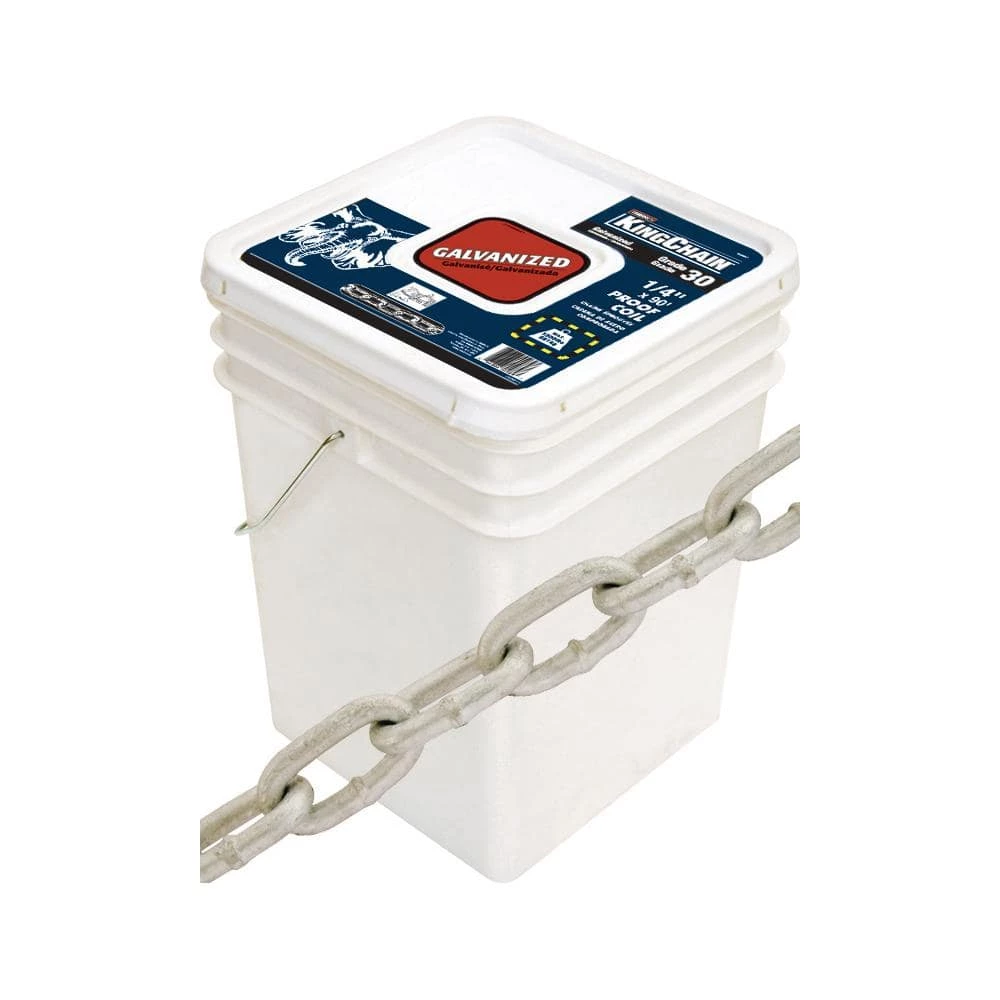 KingChain Grade 30 chain is an excellent general purpose, low carbon utility chain. The chain is manufactured to NACM standards. Each link is proof tested 2 times and the break load is 4 times the Safe Work Load (design factor 4:1). It is recommended for applications that do not require high strength-to-weight ratios. It is often used on farms, in industry and at home for general purpose applications, such as pulling stumps, lashing cargo, truck tailgates and guard rails. Chain is galvanized which provides with excellent corrosion resistance. Do not use for overhead lifting. Never exceed the Safe Working Load (SWL).