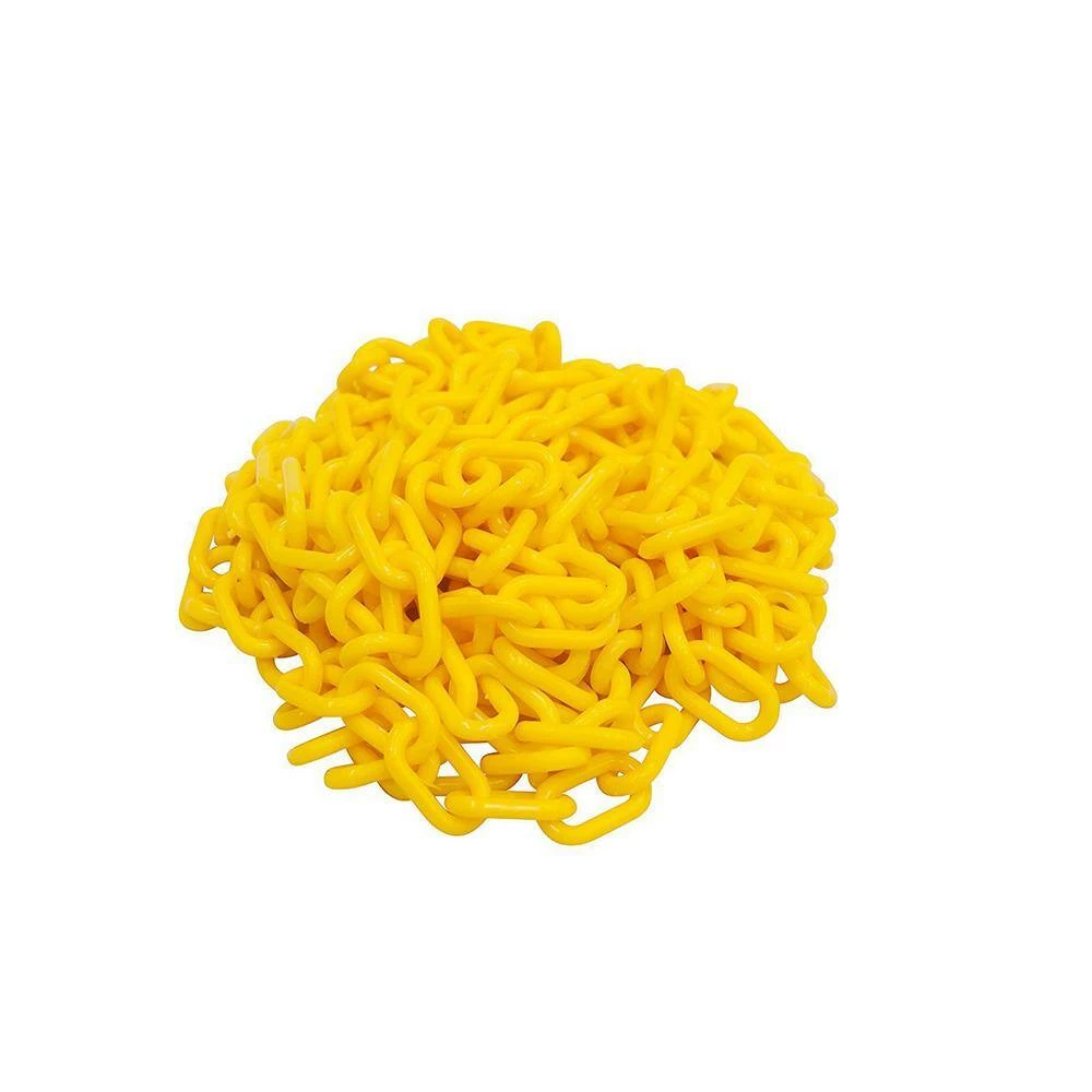 KingChain yellow plastic chain made of High-Density Polyethylene (HDPE), so it’s lightweight, strong and durable. This chain is the go-to for connecting safety signage and crowd-control barriers. Use it to create a highly visible barrier to protect patrons and discourage unauthorized access. It’s easy to cut, so you can customize the length to close off short or long distances without costly investments. This light-duty, all-weather plastic chain is good for indoor or outdoor use and has UV-additives to reduce color fading. It will not rust and it is recyclable. Do not use for overhead lifting.