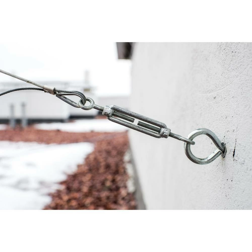 KingChain galvanized aircraft cables are used for many material handling applications and have typical home uses for garage door cables, winch lines, tie-downs, dog runs, hanging signs, and guy wires for flagpoles. KingChain aircraft cable is made in accordance with US Federal Specification RR-W-410D. The cable is hot-dipped galvanized for long lasting durability and moderate corrosion resistance. The 7×19 construction consists of 19 individual wires laid in a spiral around a center King wire to form a strand. Seven strands are then wound together to form a cable. This construction provides superior strength, flexibility and abrasion resistance compared to 7×7 cable. This cable has a Safe Working Load (SWL) of 850 lbs. (386 kg). Its breaking strength is 5 times the SWL (design factor 5:1). Any breaking strength ratings are listed for comparison purposes only. Actual operating loads may vary but should not exceed the recommended design factor of 20% of the products breaking strength. Not intended for aircraft use.