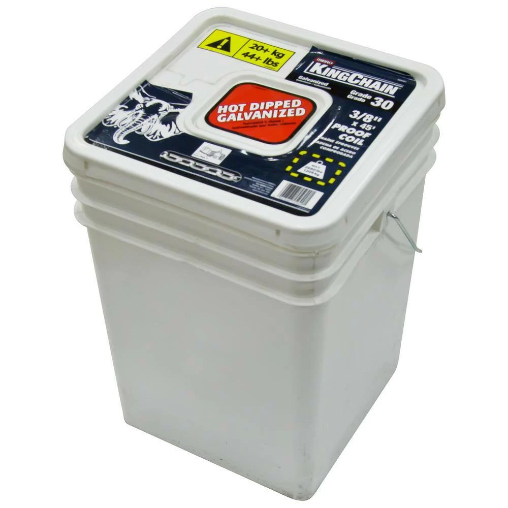 - Bulk packed in a large pail with a lid that provides storage for the chain tail after a length is cut