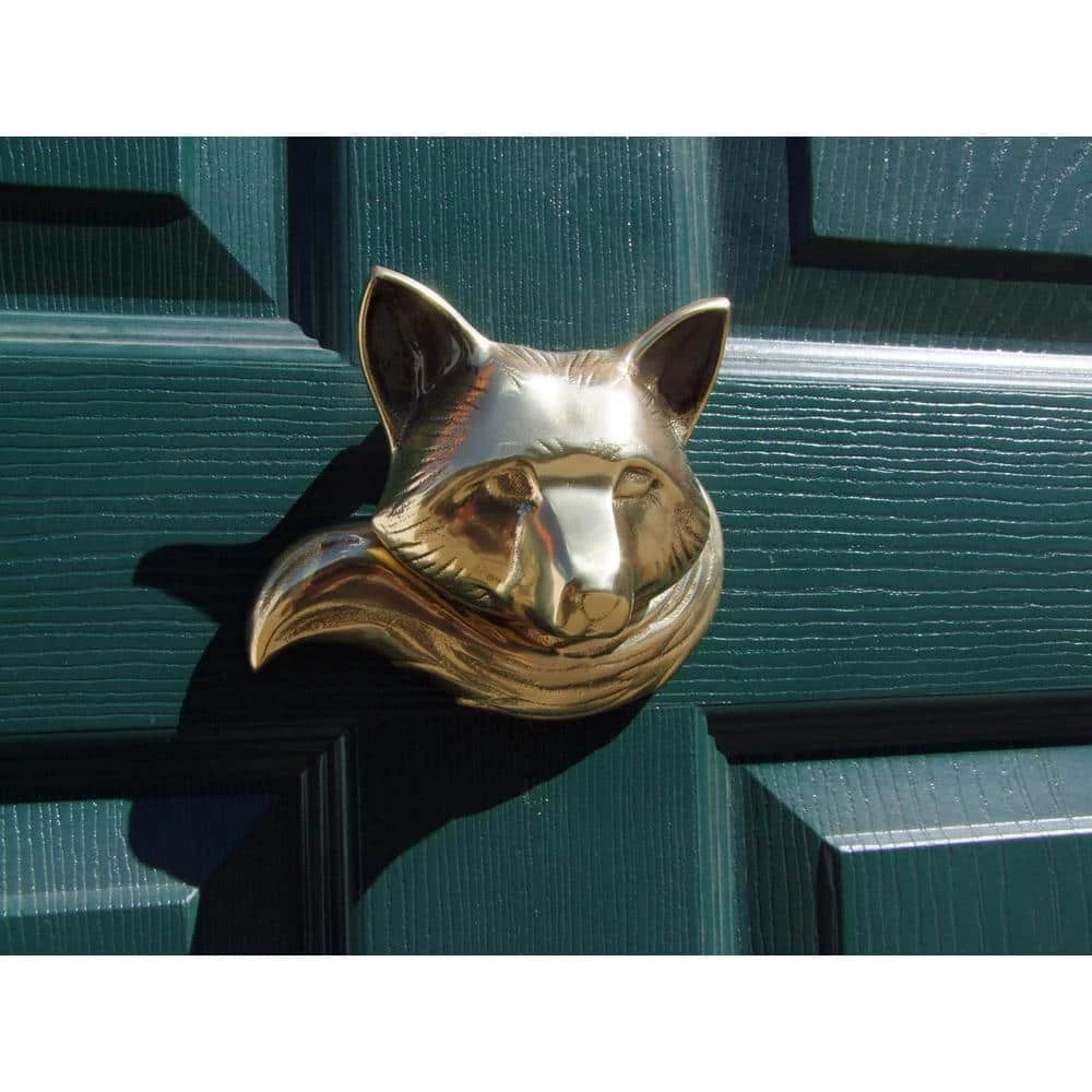 The Fox is sand-cast in solid Brass and designed by Michael Healy, a Rhode Island artisan known for his truly Unique Door Knockers. The door knocker is polished by hand and then given a protective coating to maintain its beautiful finish. Michaels signature adorns each piece. This item is surface mounted so no hardware will be visible on the door interior.