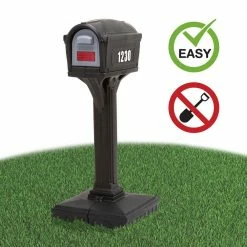 No more digging or concrete or hours to install a mailbox. The patent pending Dig-Free Easy Up Classic Mailbox can be installed in a few simple steps. Just level the surface, assemble the mailbox and post combination, fill base with sand and set in place. Super durable, double-wall construction is maintenance free and will last for years. Address numbers included. Holds over 100 lbs. of sand.