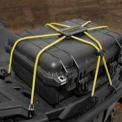 - Two circular black tension pods move up and down the bungees, providing additional quick and easy tension point adjustments for any cargo load